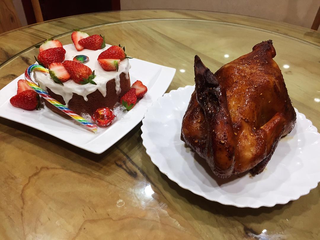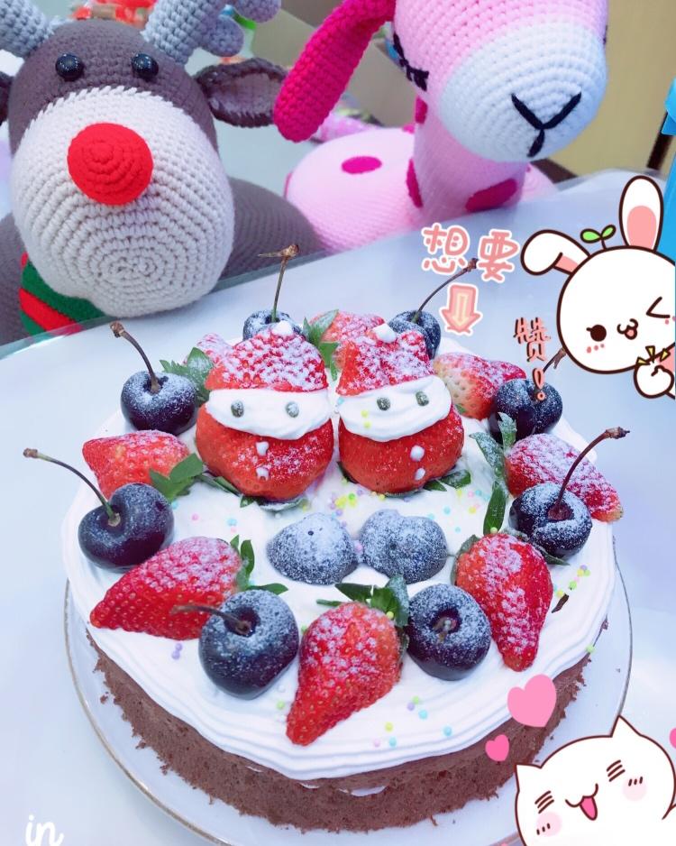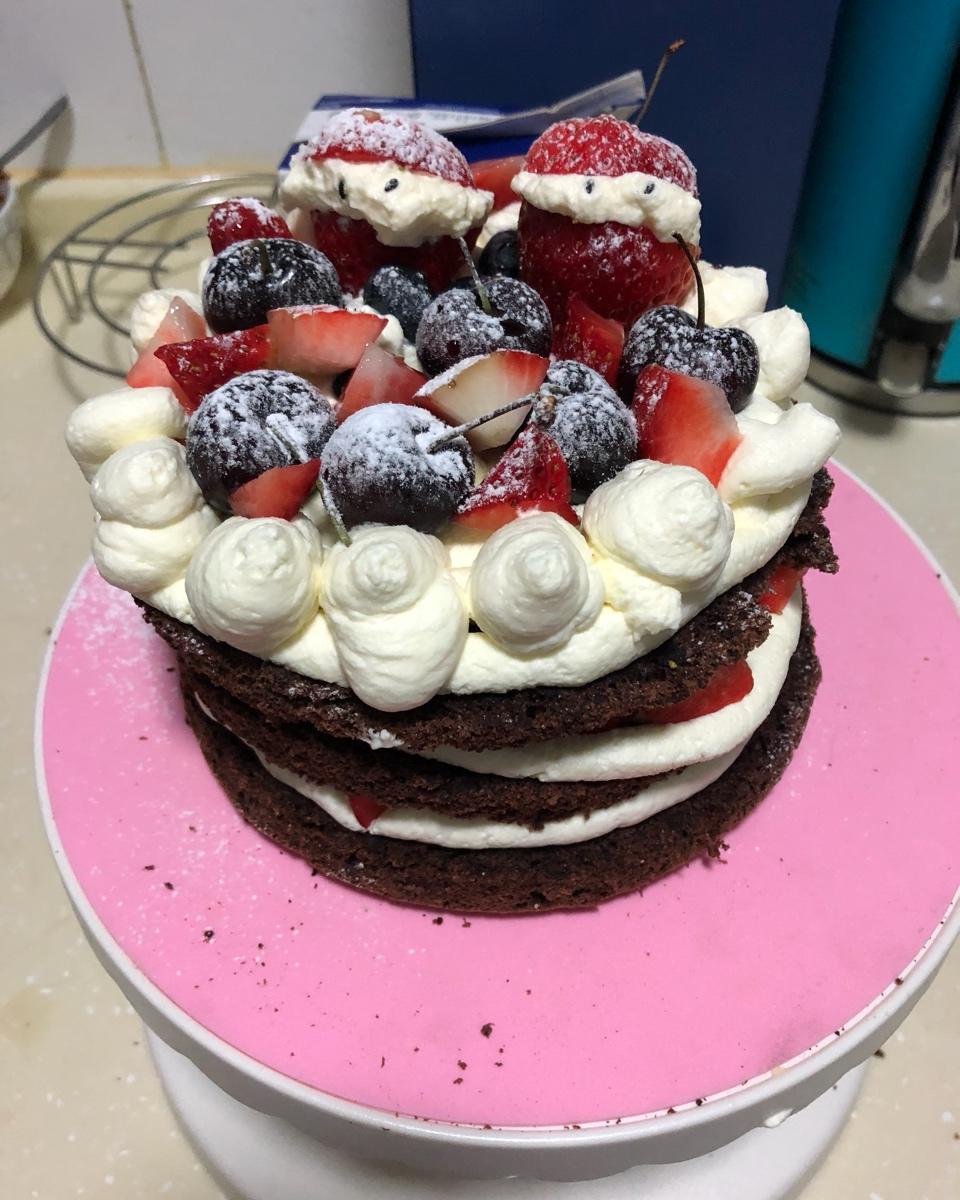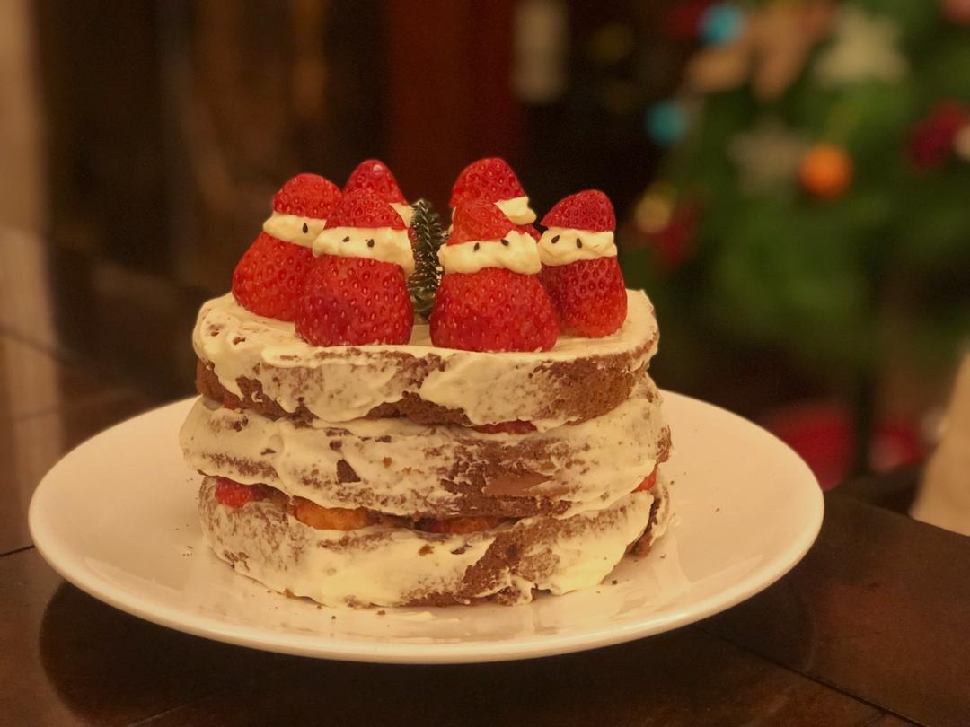圣诞节自己做了个草莓可可蛋糕