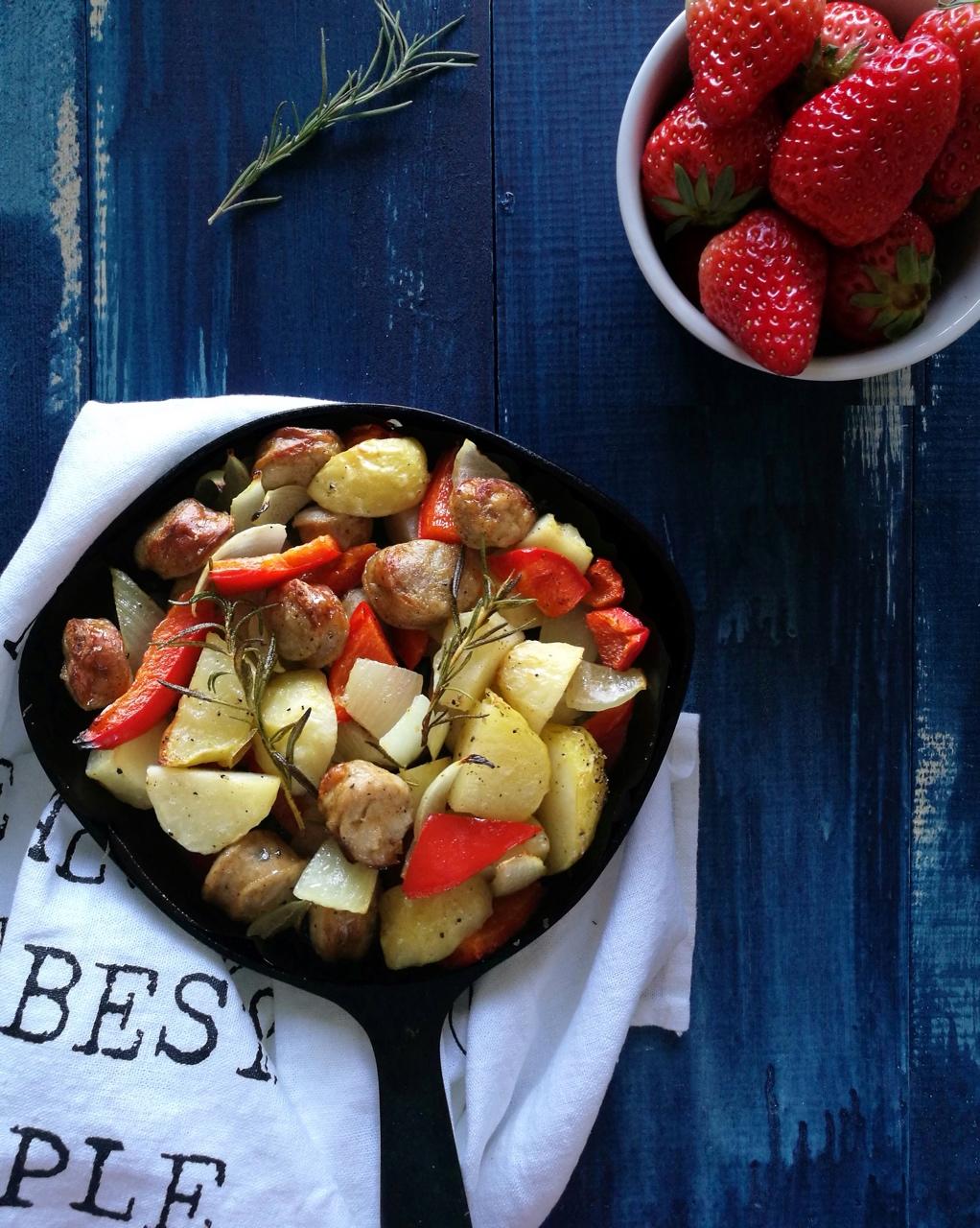 早餐拍的不满意,再来一张:迷迭香烤土豆洋葱香肠😜😜