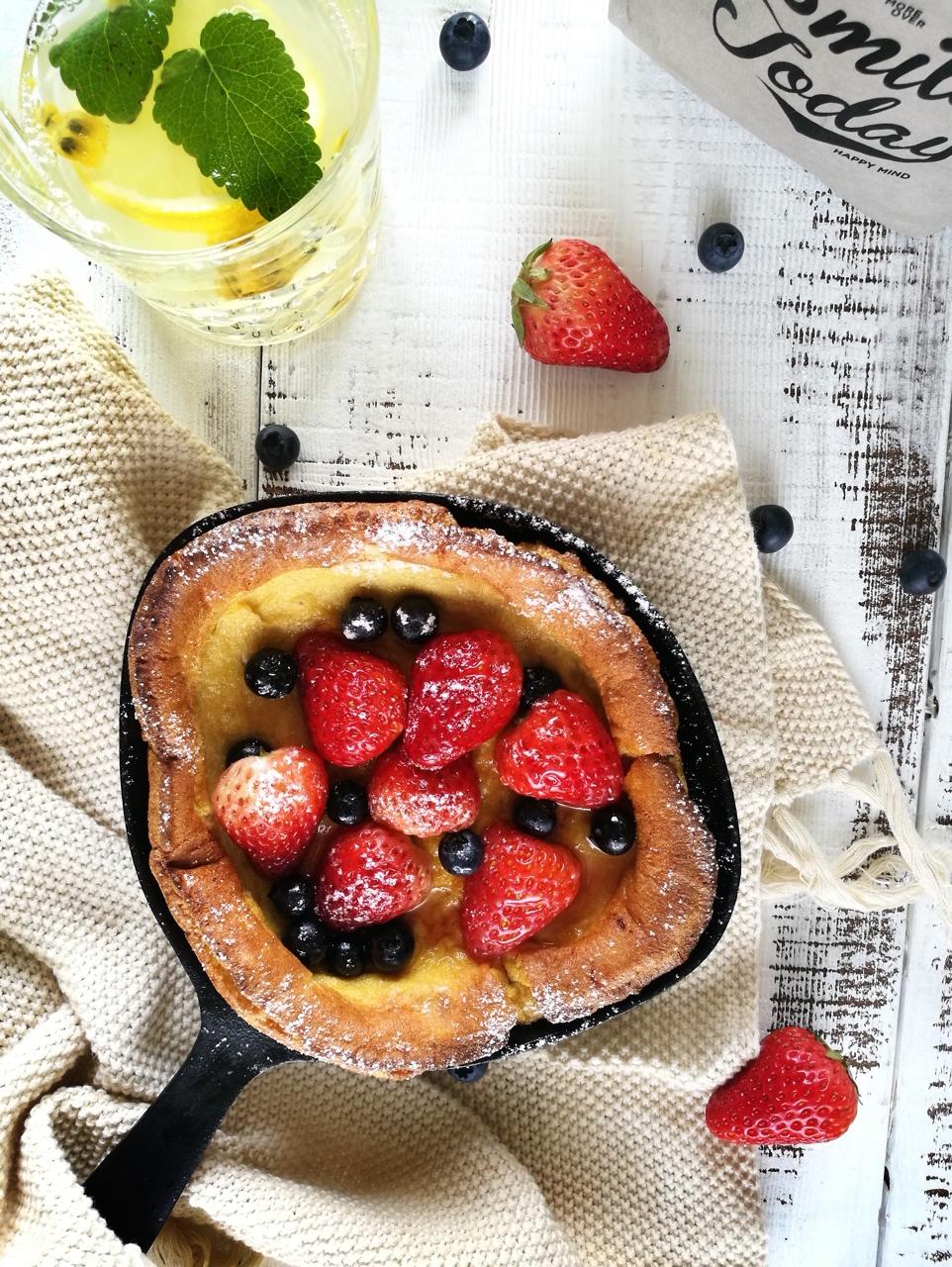 Dutch Baby, 百香果柠檬薄荷水。Dutch Baby据说是在西雅图的德国移民按...