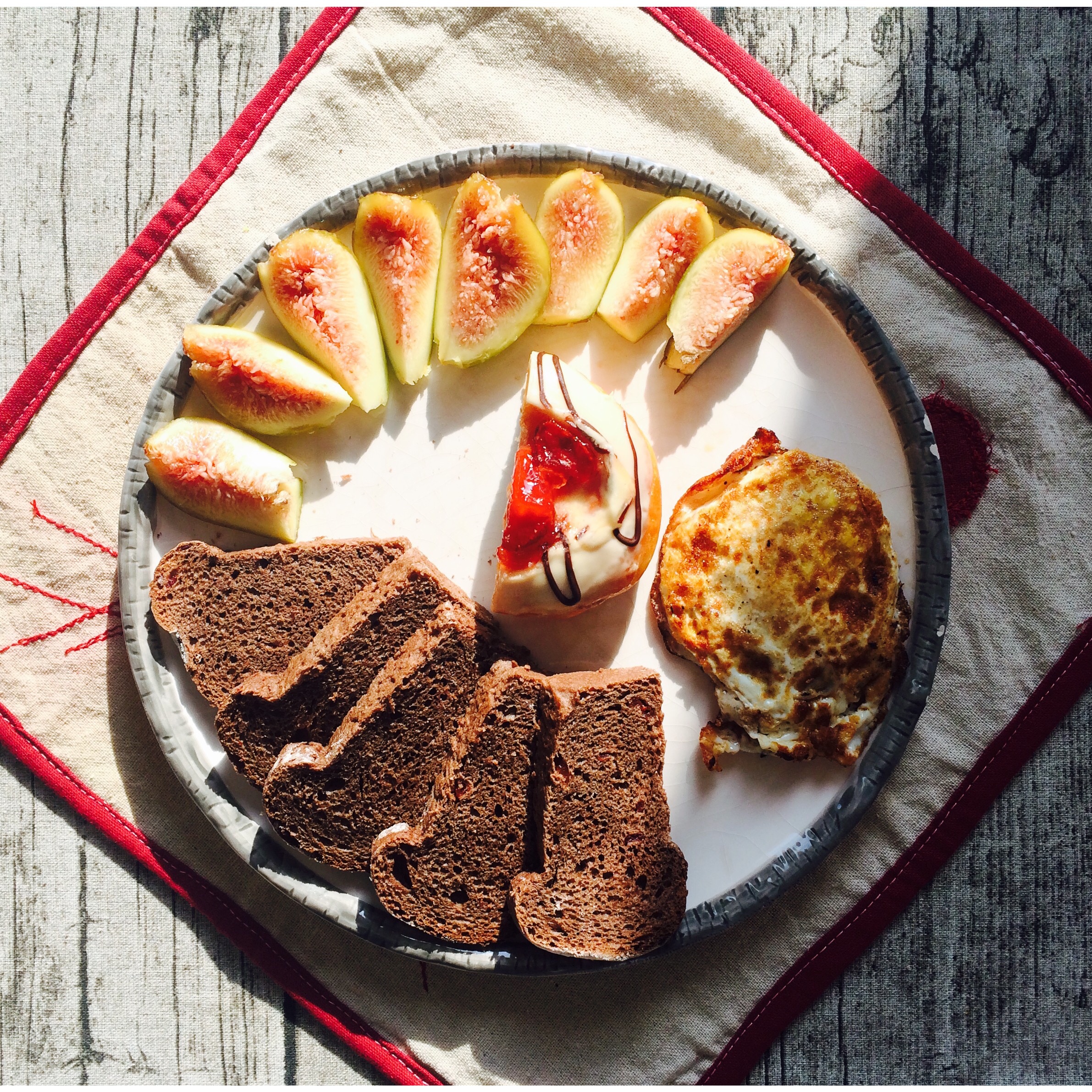 把剩余的食物摆在一起就是今天的早餐了,轻芝士蛋糕,酸奶甜甜圈,(男票的)姥姥家的无花果,还有一个外形不太规整但是火候恰到...