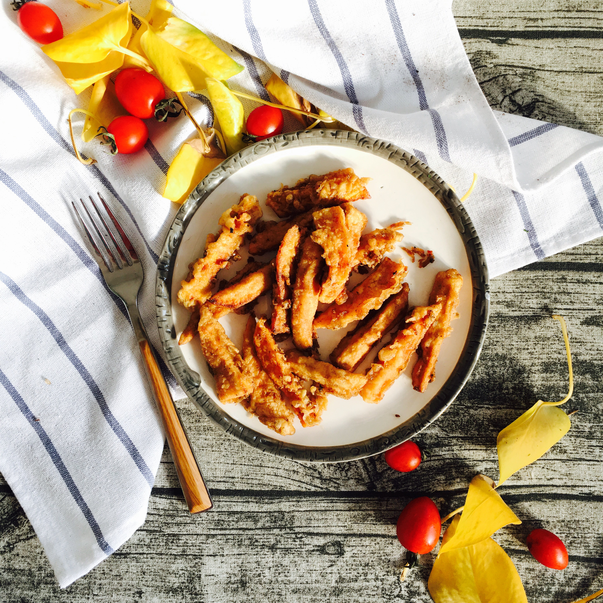 早早早。盘里装的是昨天吃剩的地瓜条(噗)。