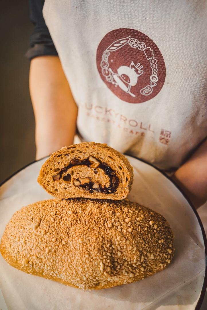 冲绳黑糖软欧-焦糖色口感柔韧的面包体,烤制至酥香的核桃,朗姆酒渍葡萄干,撒上可爱...