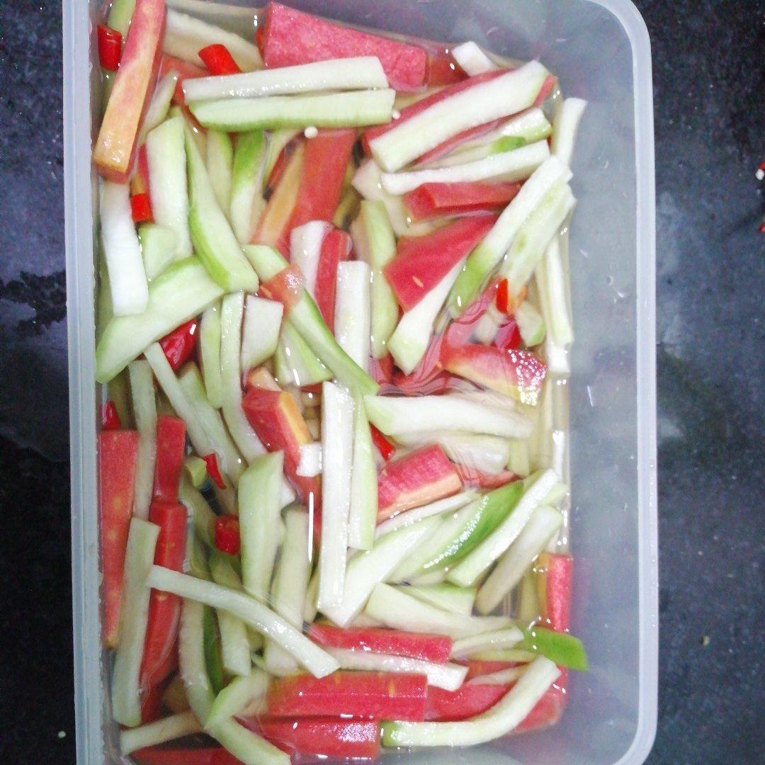 又想吃酸甜萝卜了~于是说干就干,把冰箱的两个心里美擦了丝泡了~结果。。。姨妈到访,疼的啥都不...