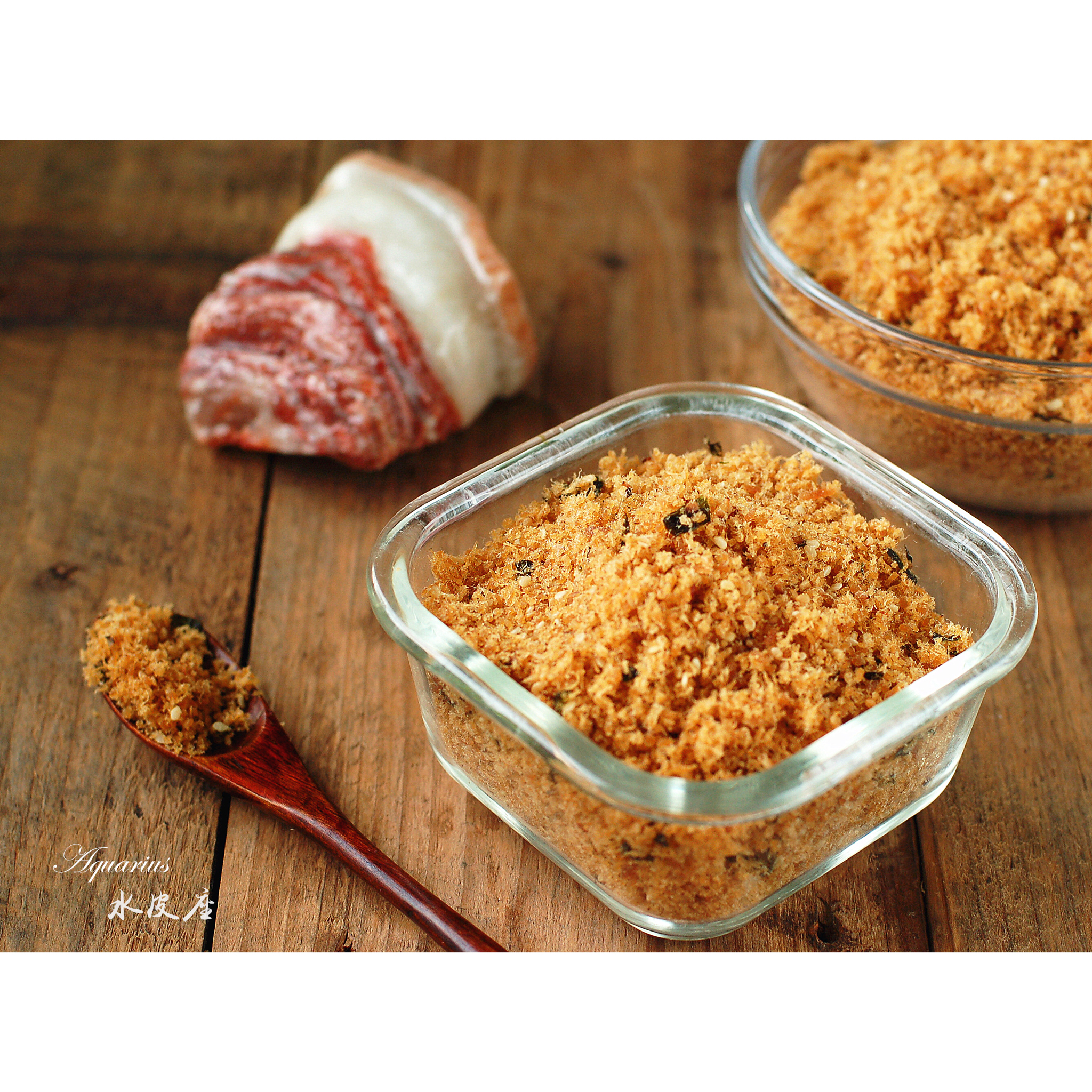 的方子果然不负众望,又酥又香。用的猪梅肉,木有加老抽(其实是家里没有),半糖,撒一大把白芝麻和海苔碎,逗得...