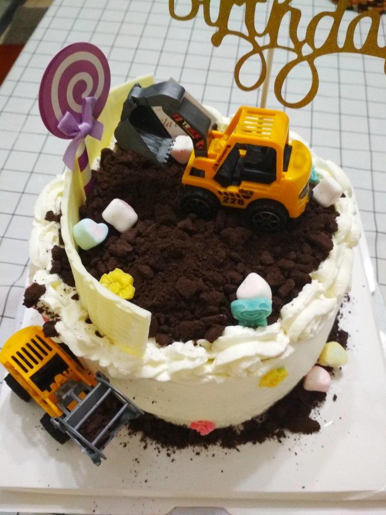 挖掘机蛋糕,小朋友过四岁哈哈,他麻麻可是三个月前就跟我预定了👑