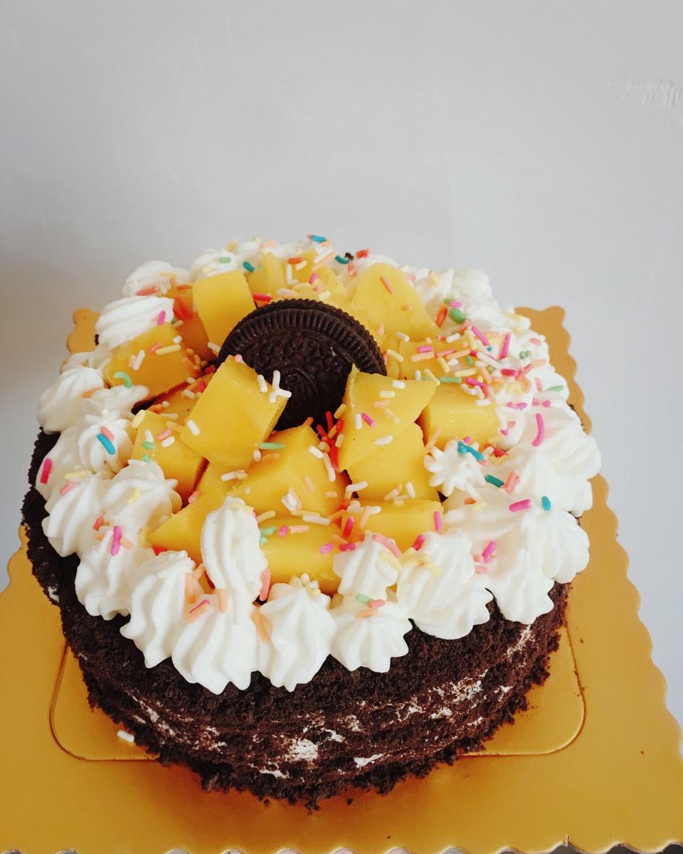 新手,第一次做戚风第一次打奶油,第一次做奥利奥芒果奶油蛋糕!