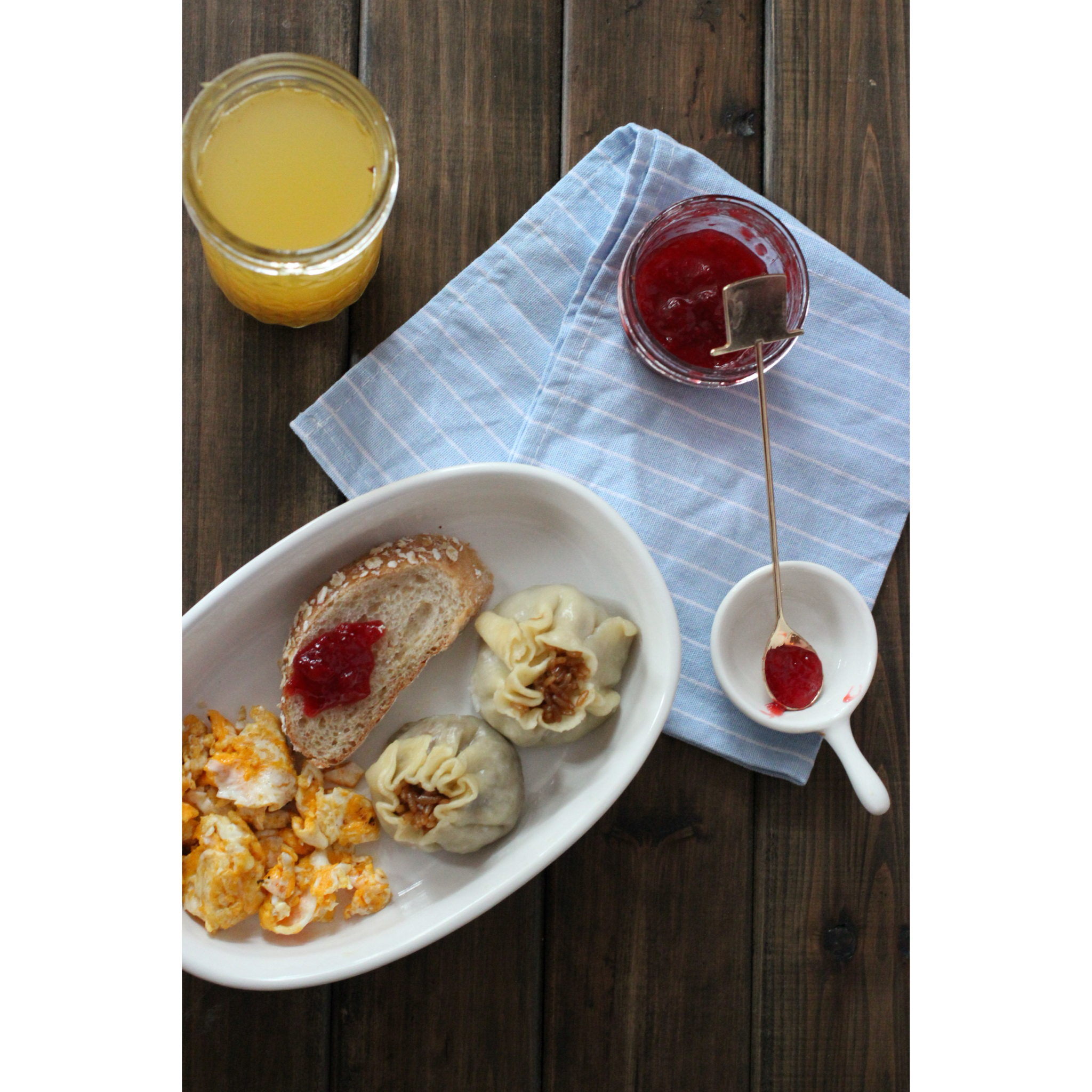 鲜肉锅贴配荷包蛋~