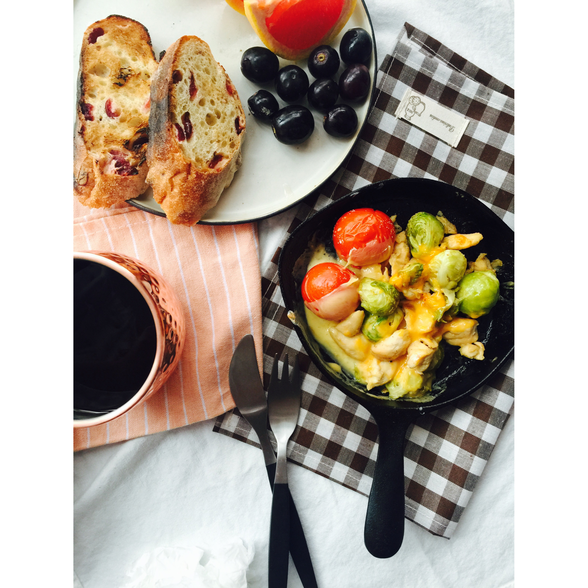 芝士焗番茄鸡肉孢子甘蓝~ 蔓越莓欧包来自@