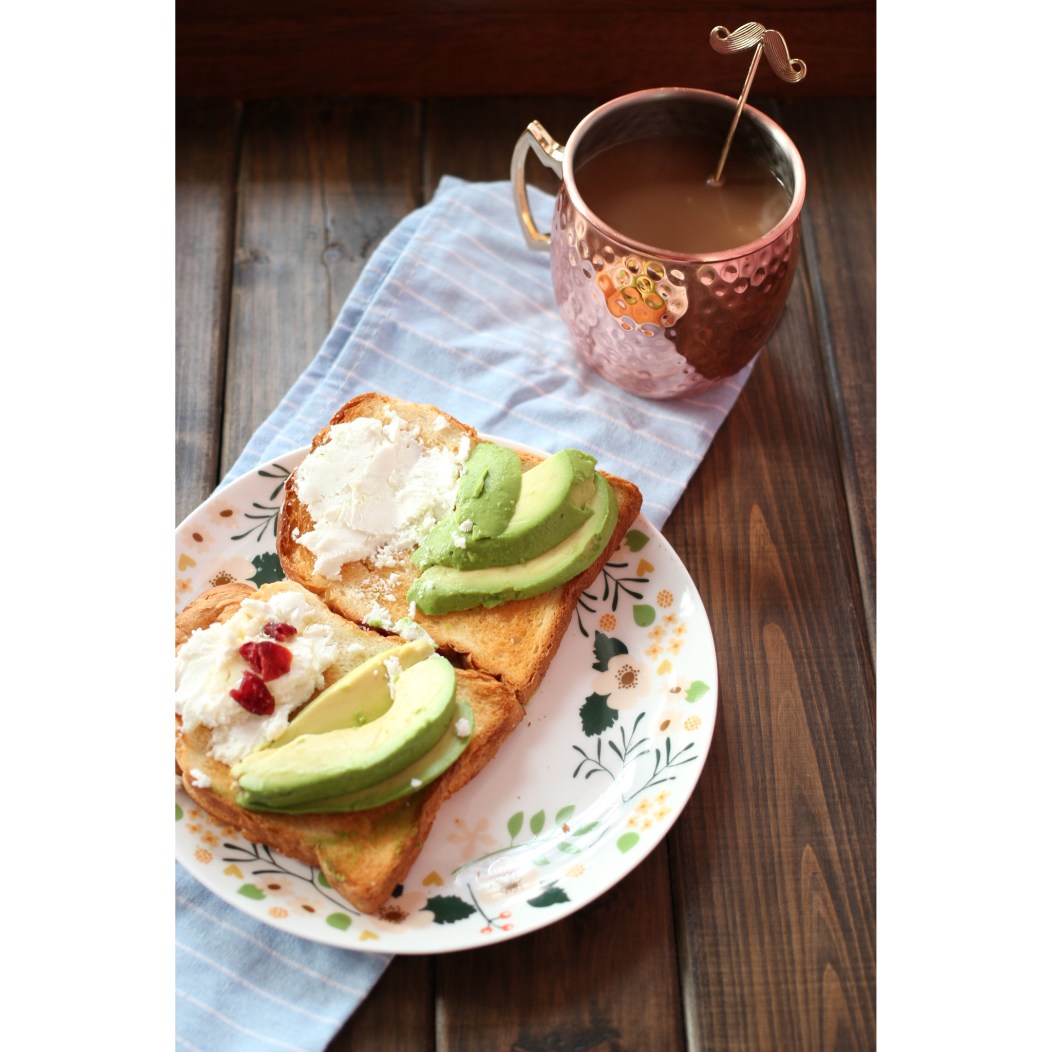 美禄咖啡鸳鸯➕牛油果烤吐司配蜜糖蔓越莓羊奶酪