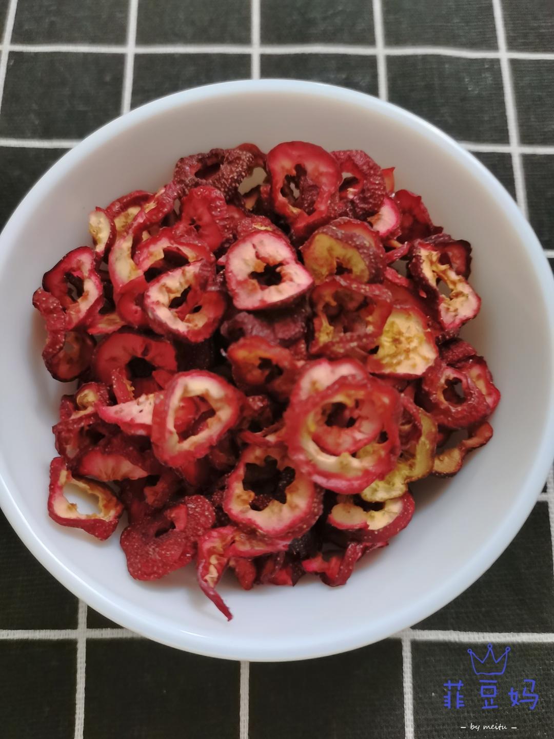 山楂干~前几天想用山楂干泡水喝,小视频说现在好多山楂干可能都被熏了硫磺,我就不太敢买了。于是在菜市场买了半斤山楂,自己切...