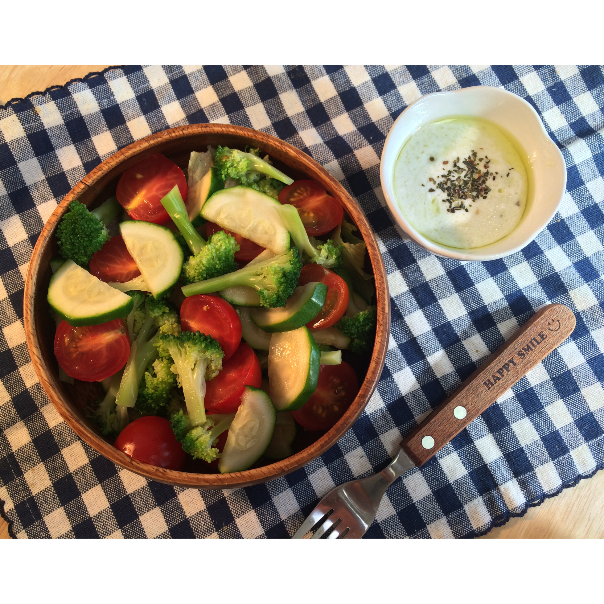 【西葫芦番茄西兰花沙拉配酸奶罗勒酱】