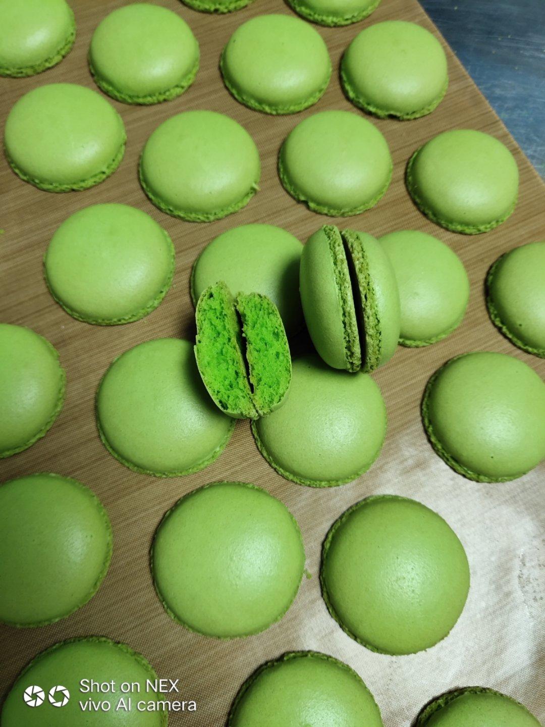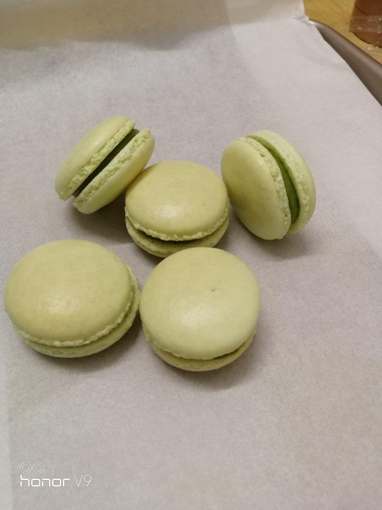 小朋友喜欢吃甜食。自己亲手给他烤了无色素版马卡龙,中间夹抹茶夹馅🍵没有加糖,中和了马卡龙的甜味,非常赞👍。