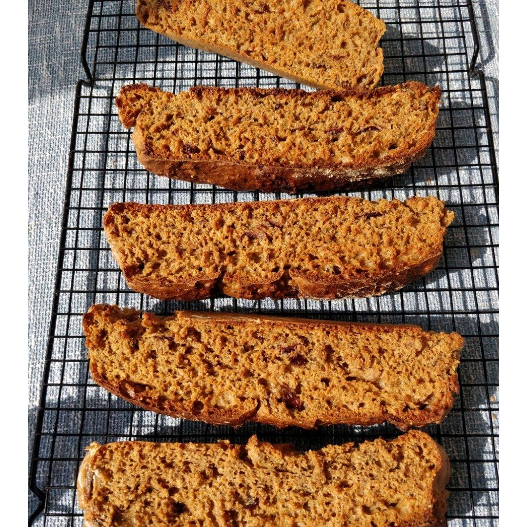 换成黄油,多加半根香蕉,加了一把蔓越莓和核桃,计划作为一周的早餐,估计计划会被更改
