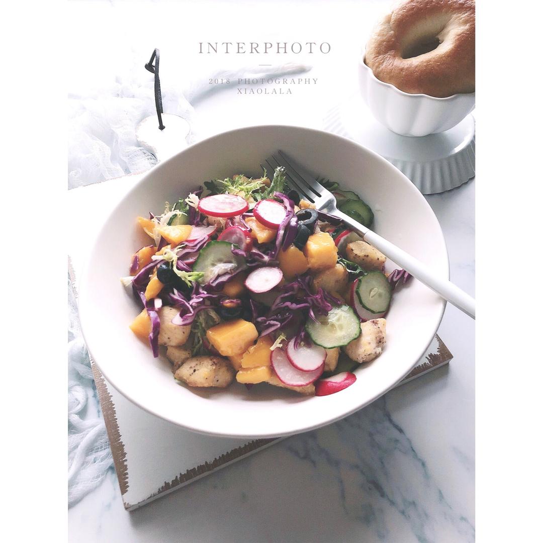 鸡胸芒果黑橄榄蔬菜沙拉