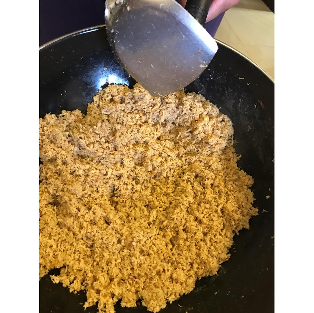 鳕鱼松:超市买的鳕鱼,从头到尾没有加一滴油,做出来的鱼松却很多油,不过味道不错的,...