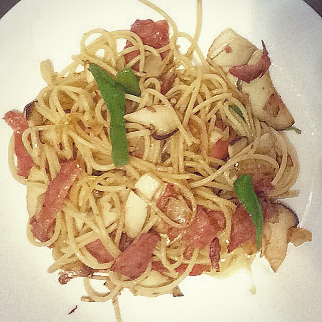 中午刚做的白汁蘑菇培根意面