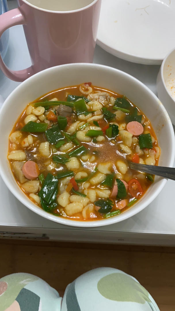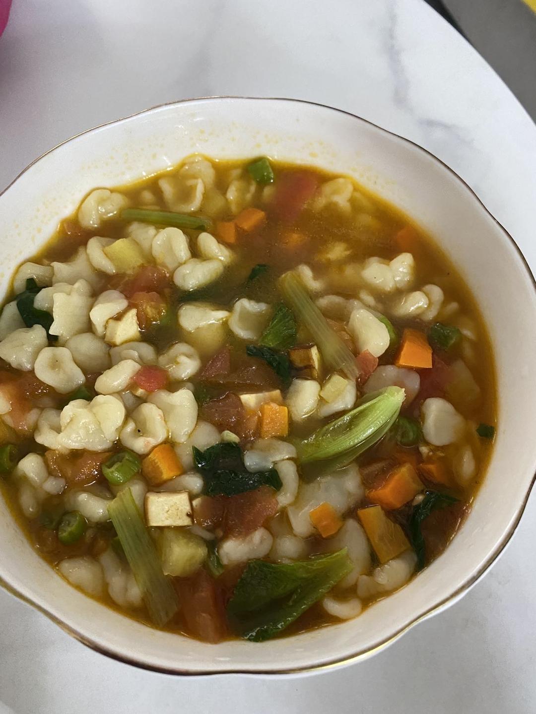 猫耳朵,直接在案板上搓的,也很不错,浇上哨子,熬熬香~