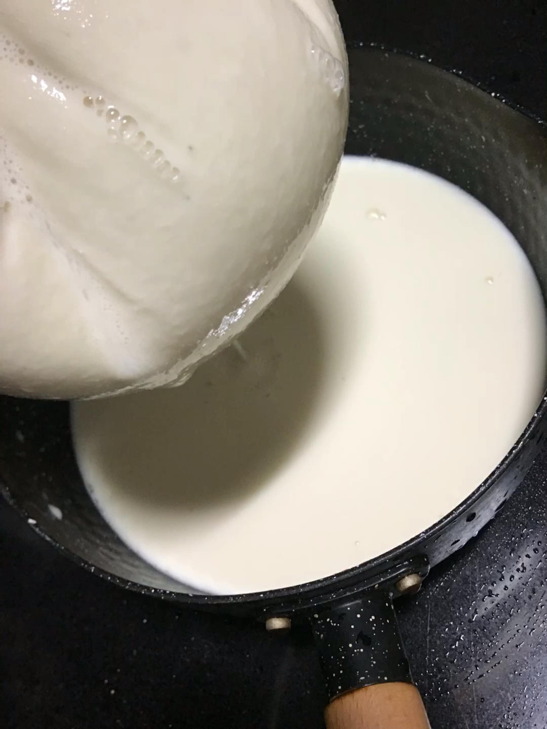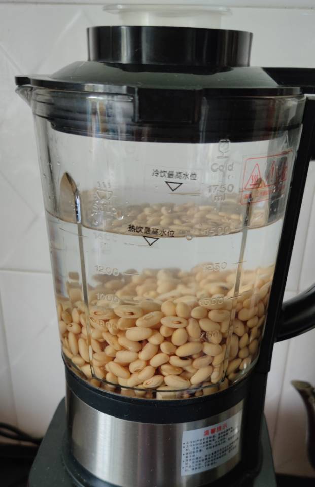1.用破壁机把泡好的豆子加水打成浆