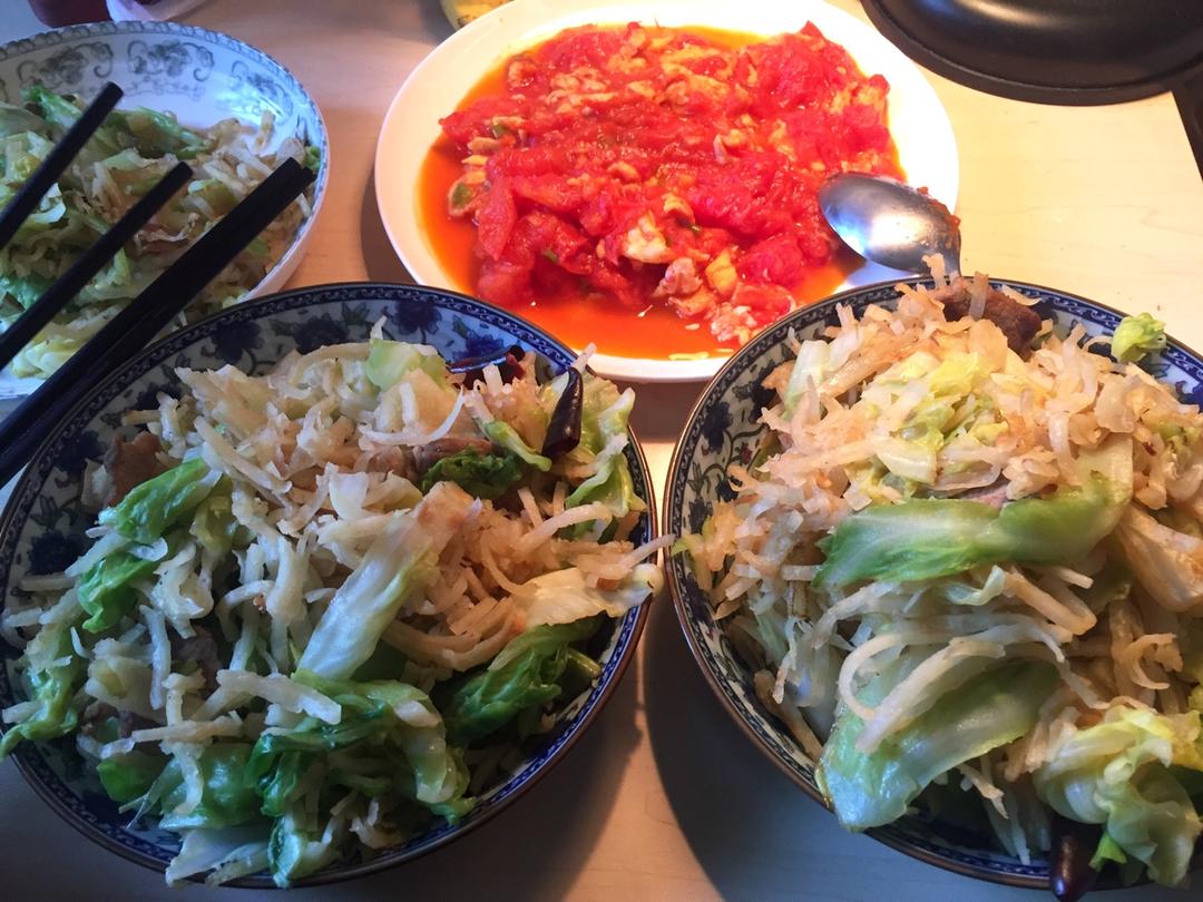 2017第一天,中午吃了三样菜。北京雾霾又爆表了,晚上回来自己开火。