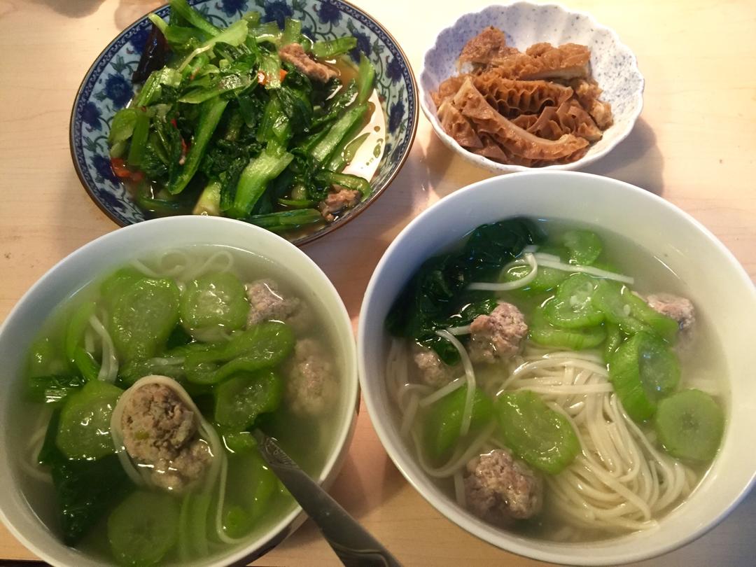 江小厨又逆天啦!今天下午论文刚提交查重,虽然超标了但好歹初步完成啦,晚上江小厨做饭犒劳。两碗热气腾腾的丝瓜肉圆汤面,颜值...
