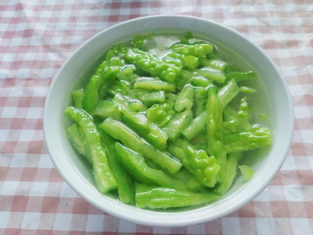 一整根苦瓜做出来一小碗,先生想吃苦瓜但是又不太喜欢苦味,所以仔仔细细的把白瓤全部去掉了,没有柠檬和蜂蜜一样好吃~碧绿碧绿...