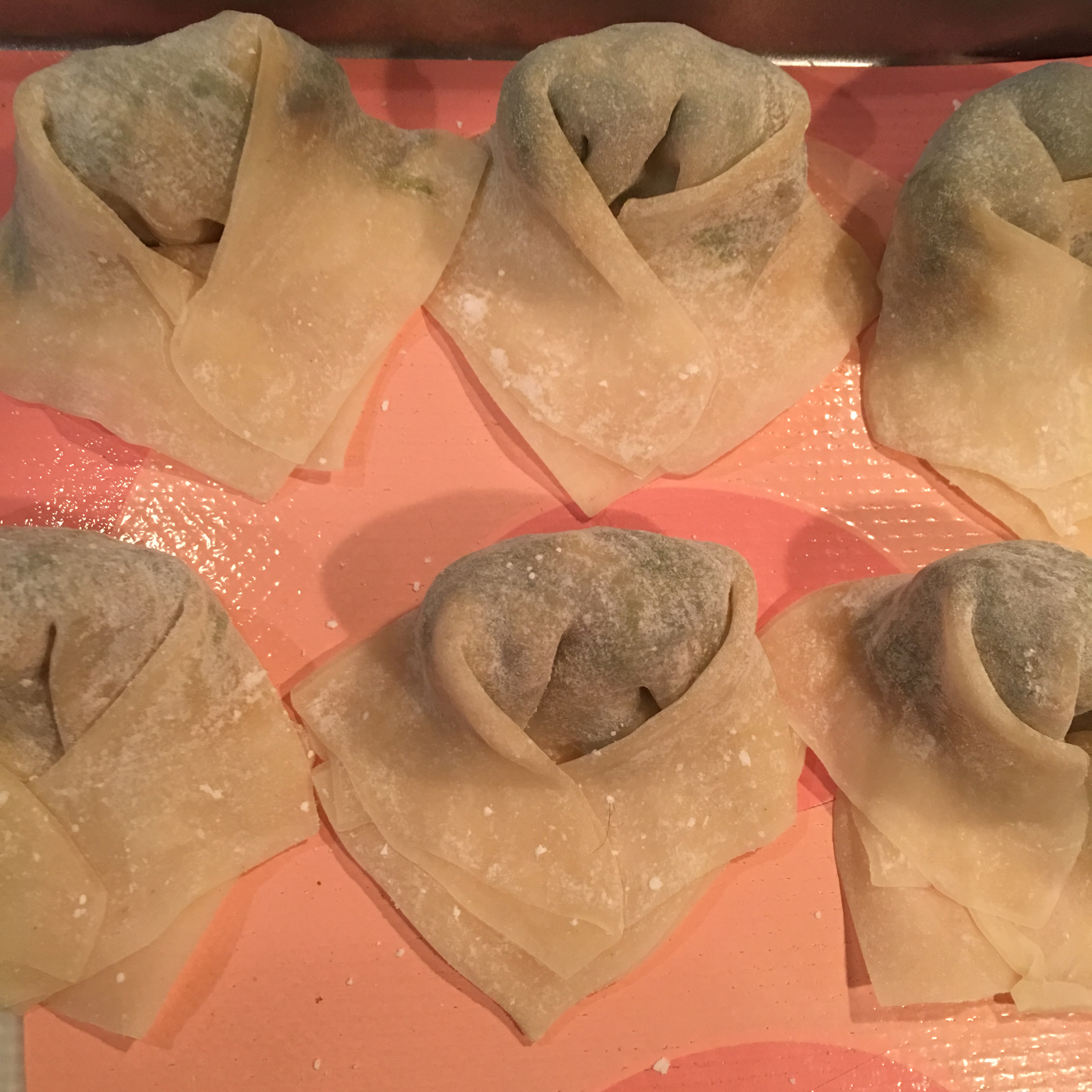 包了点素馄饨,荠菜+香菇+黑木耳+一丢丢香菜+鲜笋+一点胡椒面,熬点素高汤加点裙带菜黑芝麻一起煮出来,再来点老外的香料醋...