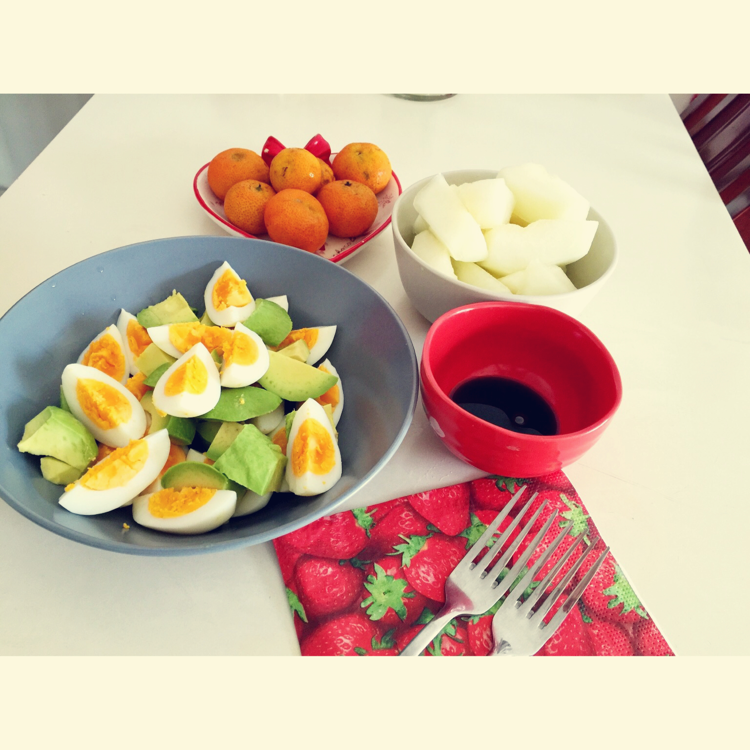 我和歪果仁都喜欢鸡蛋和牛油果。不怎么额的周末早上就这么吃。
