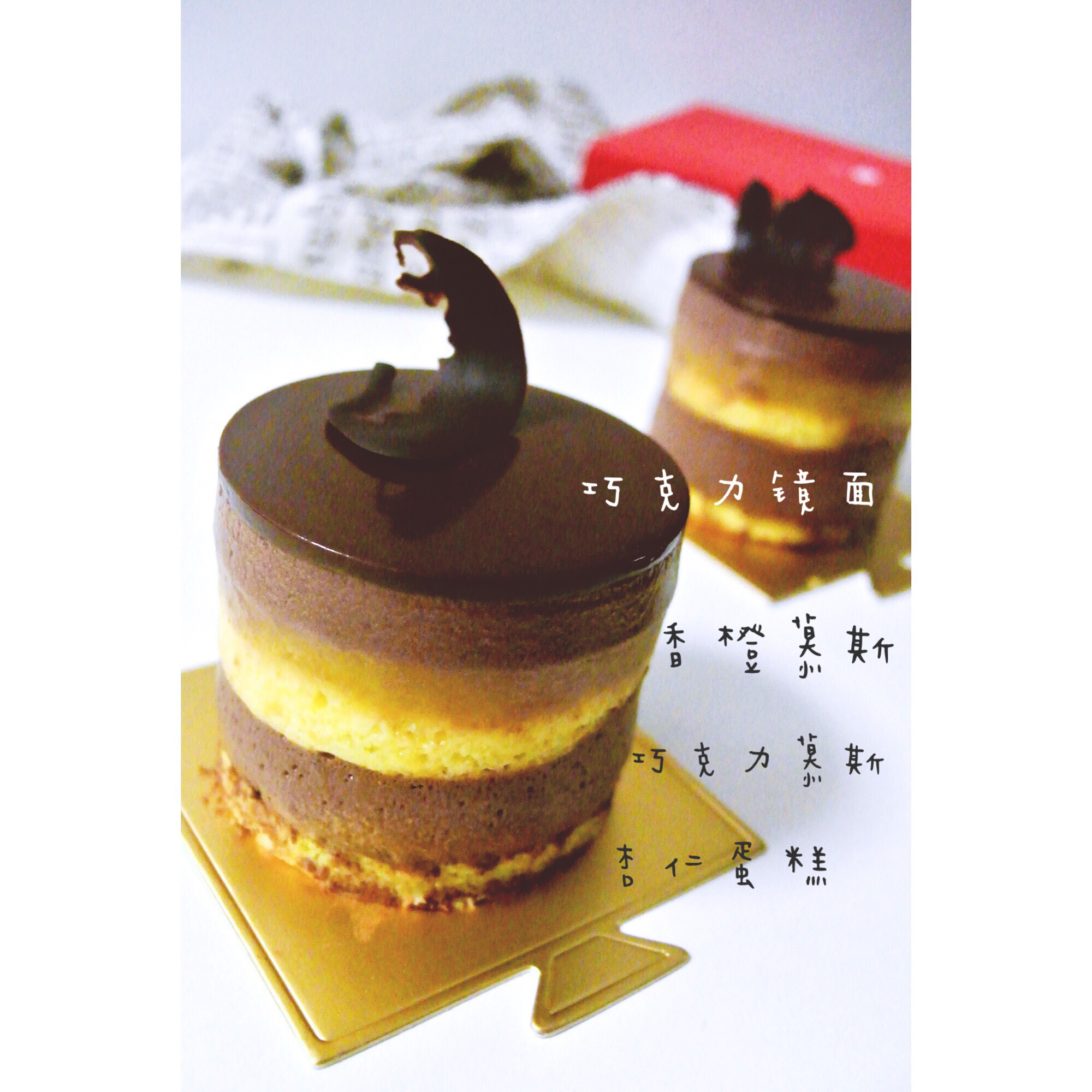 结果最后一层巧克力慕斯和香橙慕斯就融合了