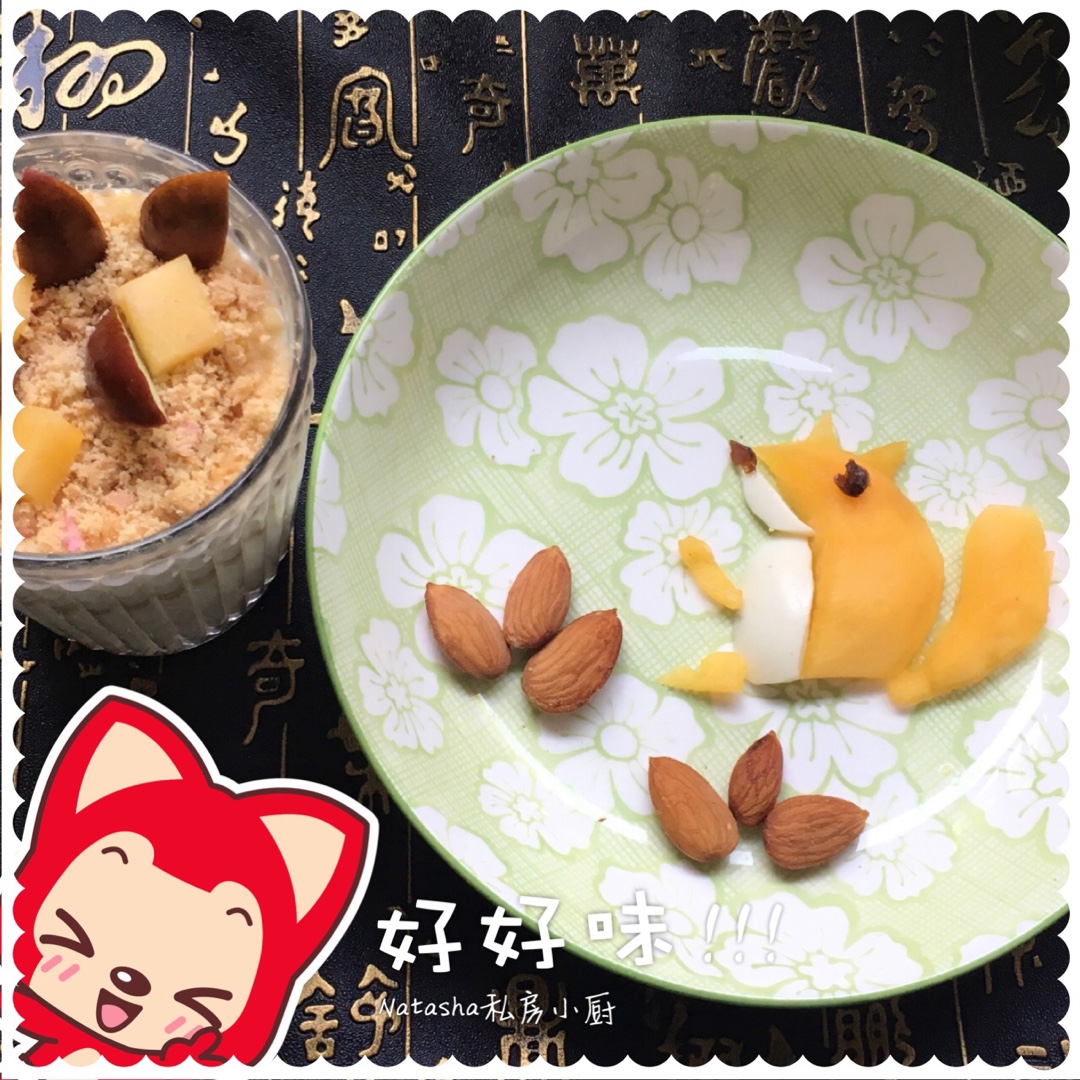 周二的早餐:简易版水果木糠杯、黄桃松鼠