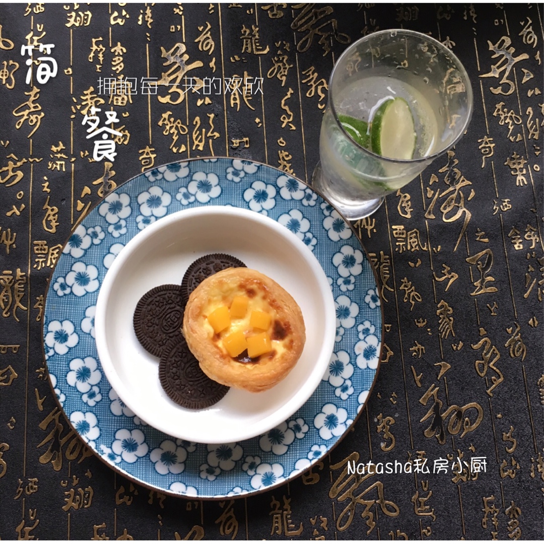 周四的早餐:青柠气泡水、奥利奥芒果挞