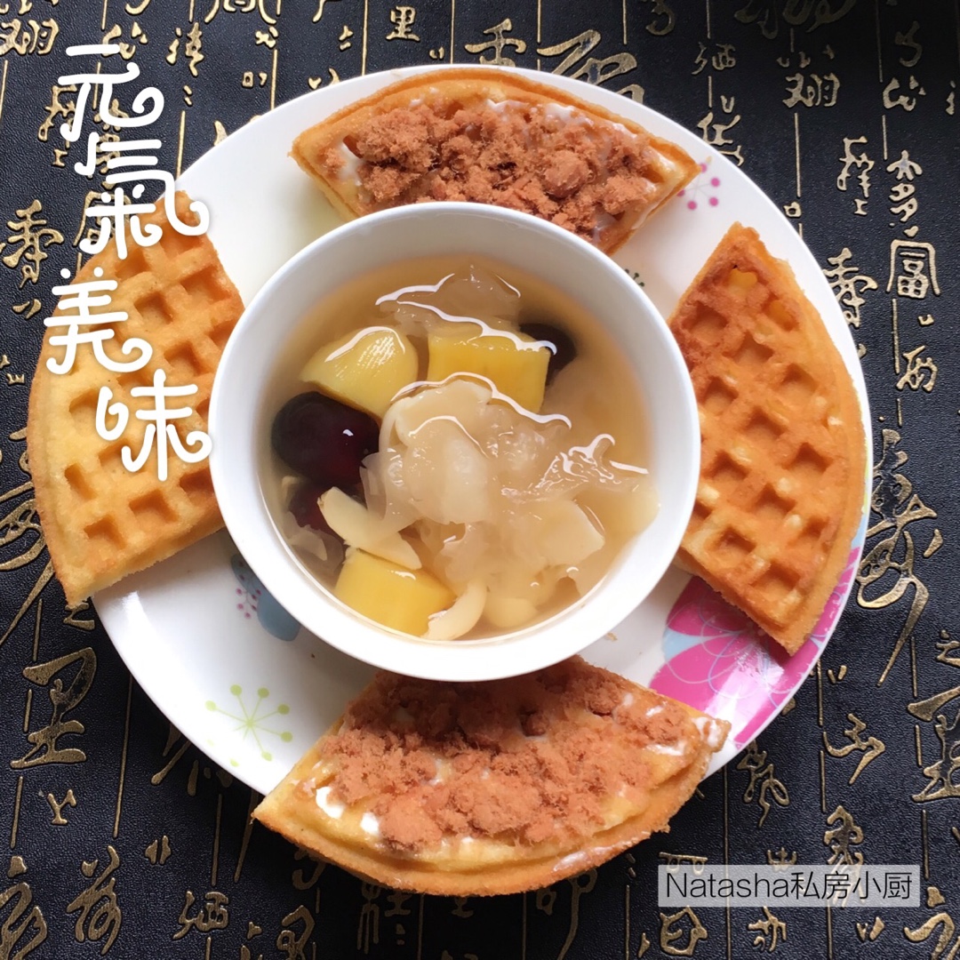 周日的早餐:番薯银耳甜汤、双拼滋味松饼