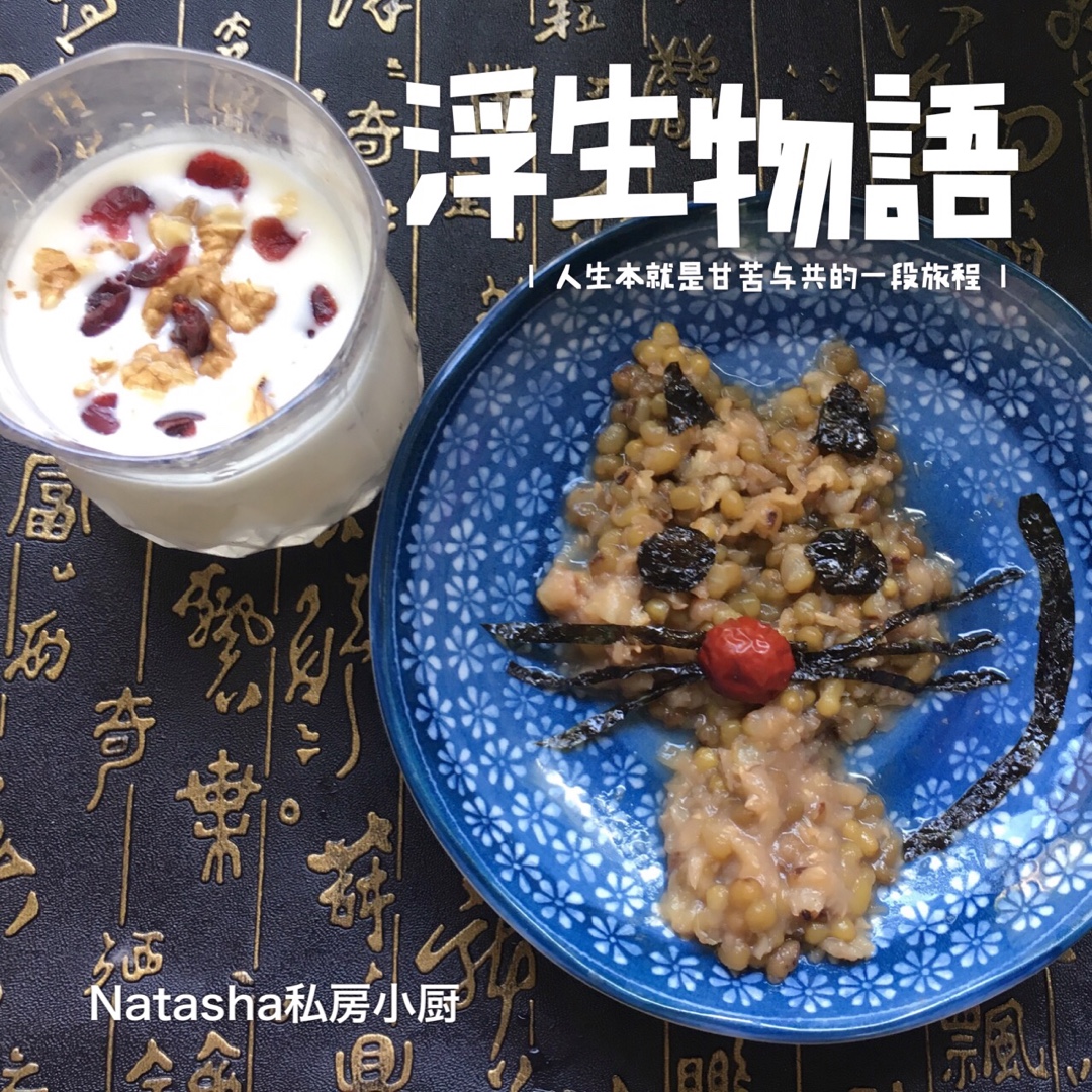 周三对我早餐:核桃蔓越梅酸奶、绿豆沙猫咪