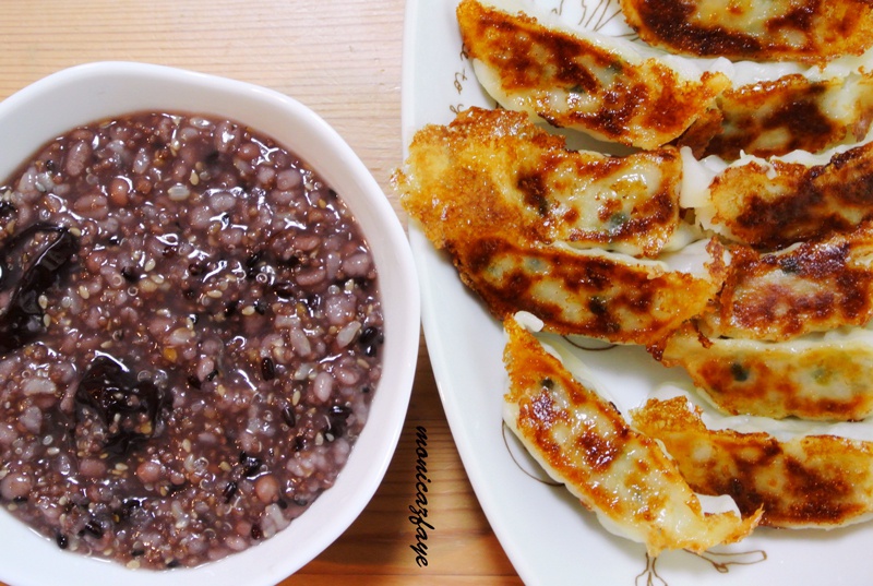 煎饺配杂谷粥。
