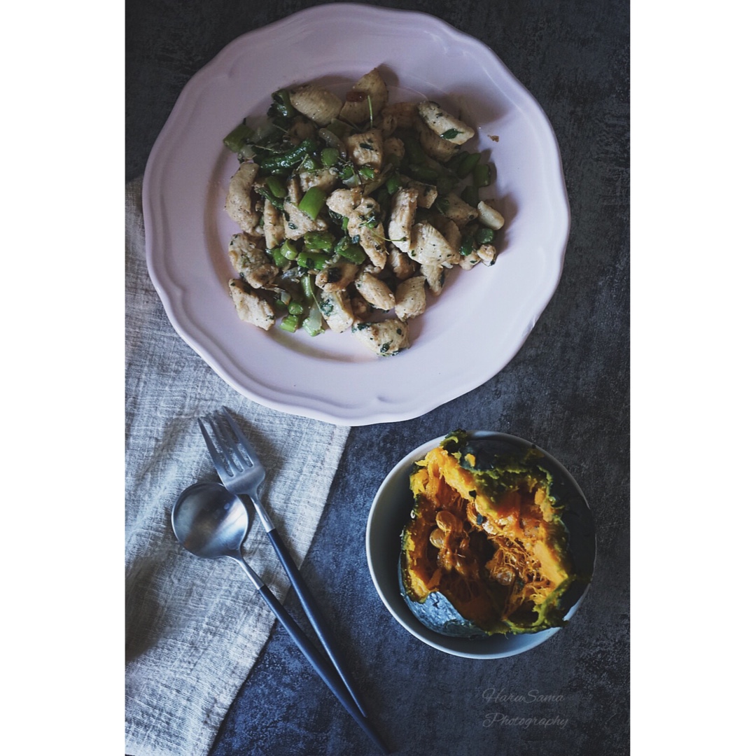 百里香腌的鸡胸最后和芦笋炒在一起了