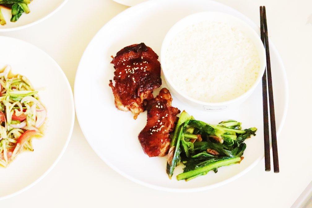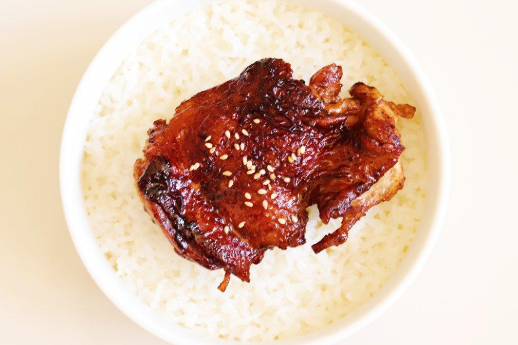 香喷喷的照烧鸡腿饭,可惜减肥不能吃鸡皮