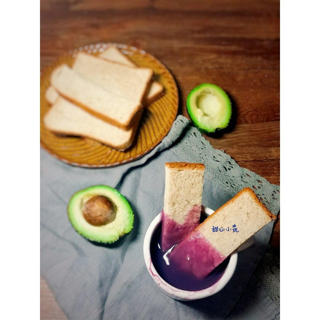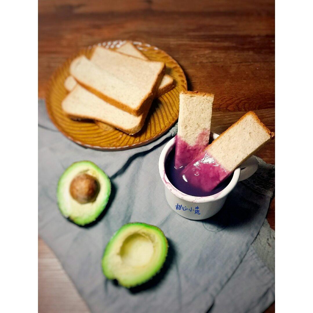 吐司片蘸着紫薯浓汤吃,颜色、味道都美丽😄