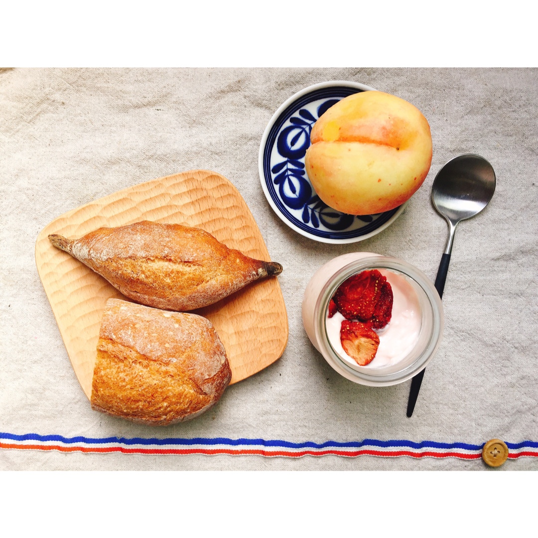 奶酪面包干、烤草莓+酸奶、水蜜桃