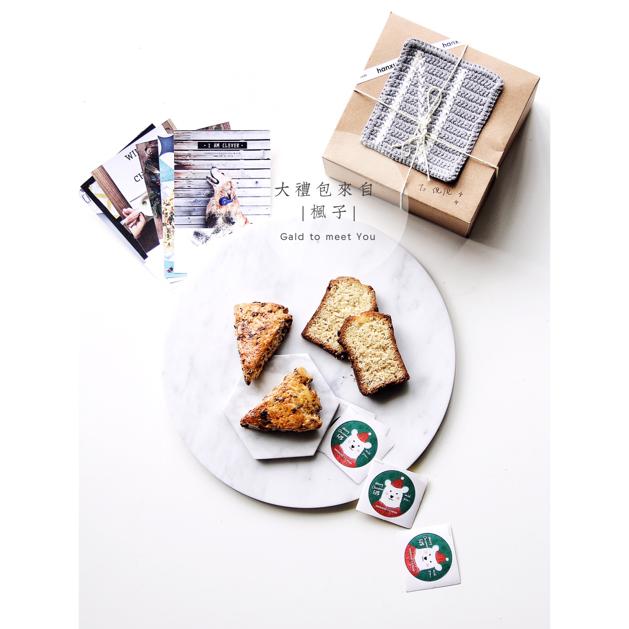 投来的自制司康,磅蛋糕,N字杯垫,明信片,粘纸,每样都爱到心里去了❤@