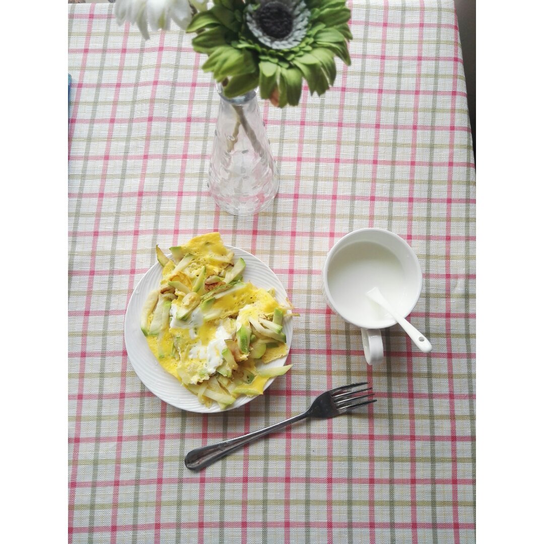 西葫芦鸡蛋饼,酸奶,肯定不饱