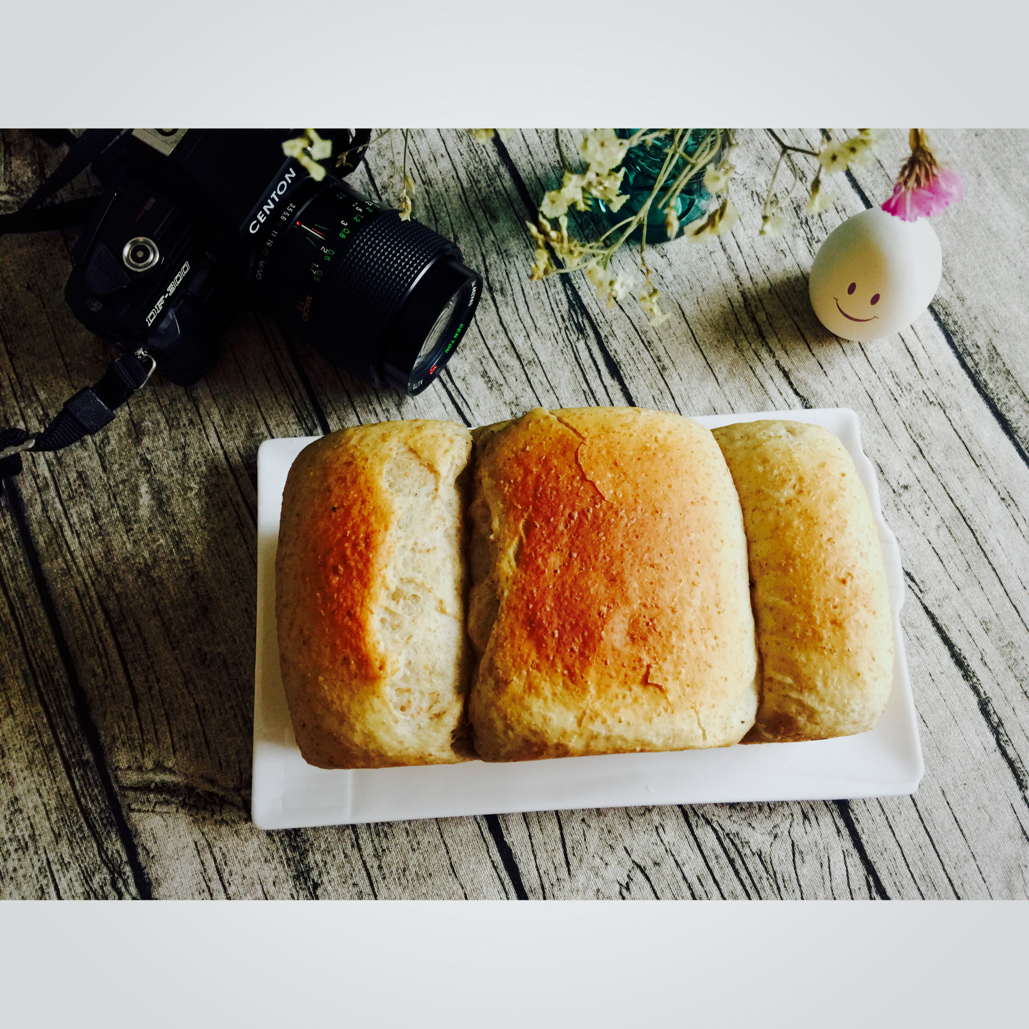 今天的吐司面包加了1/3的100%原生态的全面面粉~~