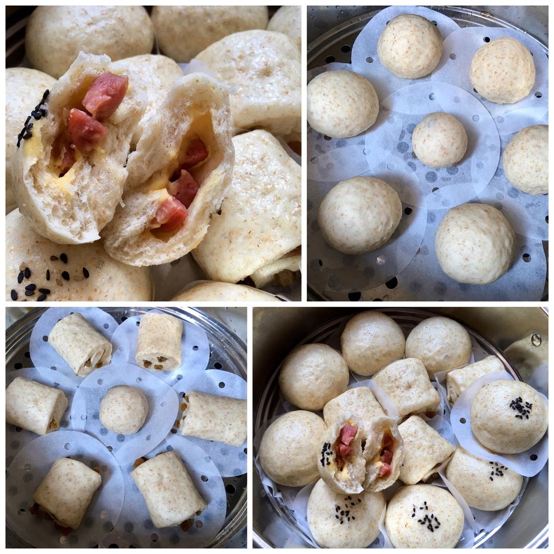 全麦馒头、全麦提子刀切、全麦芝士香肠包,快手的做法,快手的材料,嗖一下就...