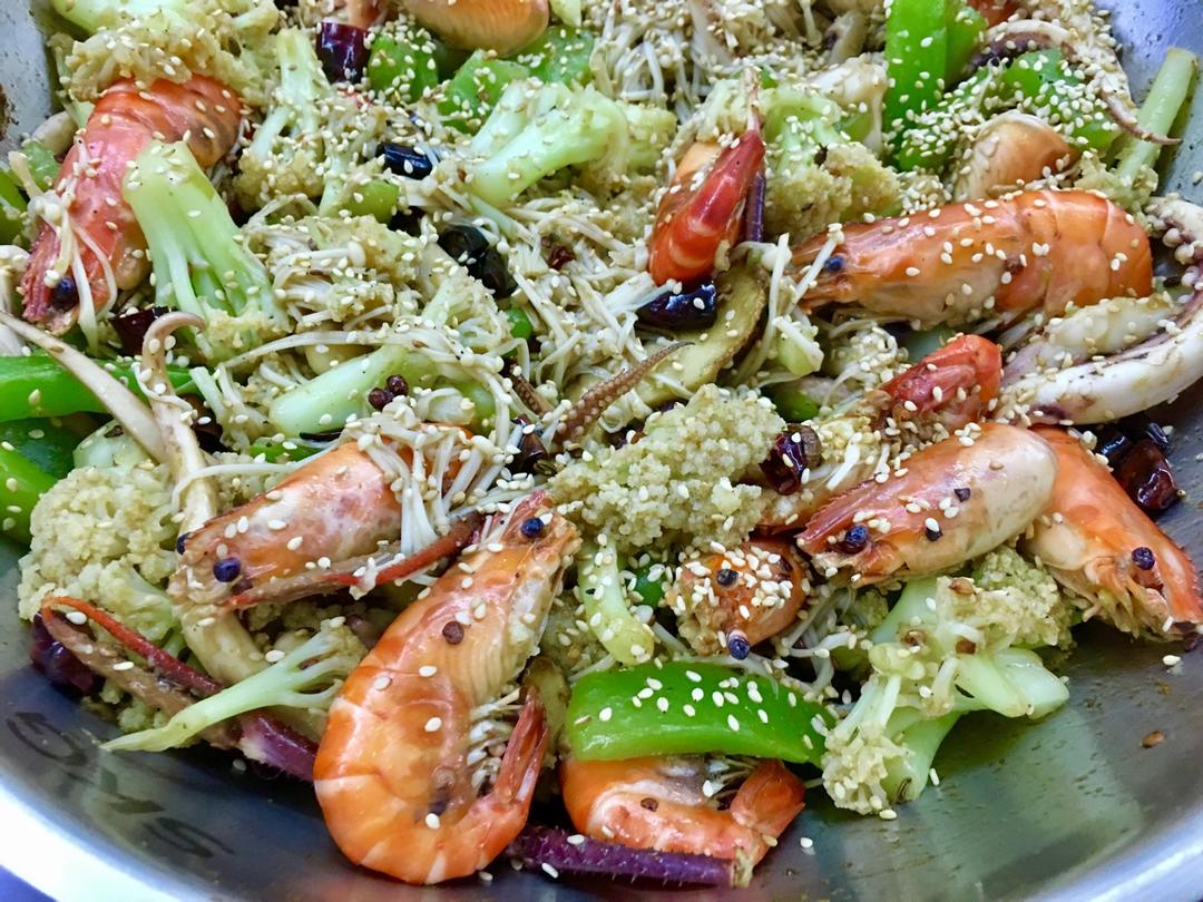 老公炒的家常版干锅,都是我喜欢的材料,好香~食材用焯水的方式代替过油,更健康一些,犯罪感也没那么强😂😋 #晚餐•2017...
