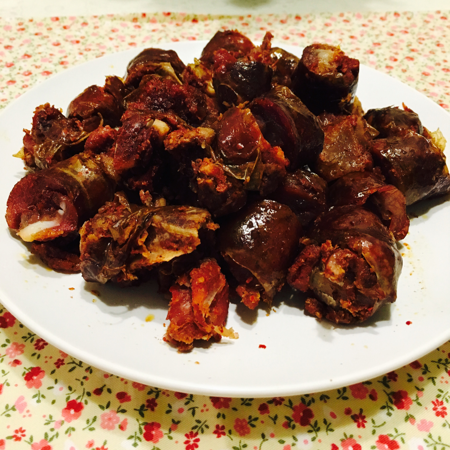 朋友妈咪帮做的排骨香肠,是把排骨剁小块像灌香肠那么灌,不好灌,只能手工灌。烟熏麻辣味儿,是我冬天的心灵慰藉…… #晚餐•...