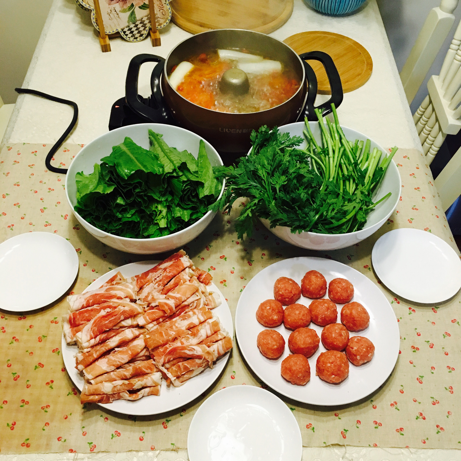其实这会儿正在加班,晚餐是前天的三人小火锅~怀念。2016要重回下厨房了~加油!