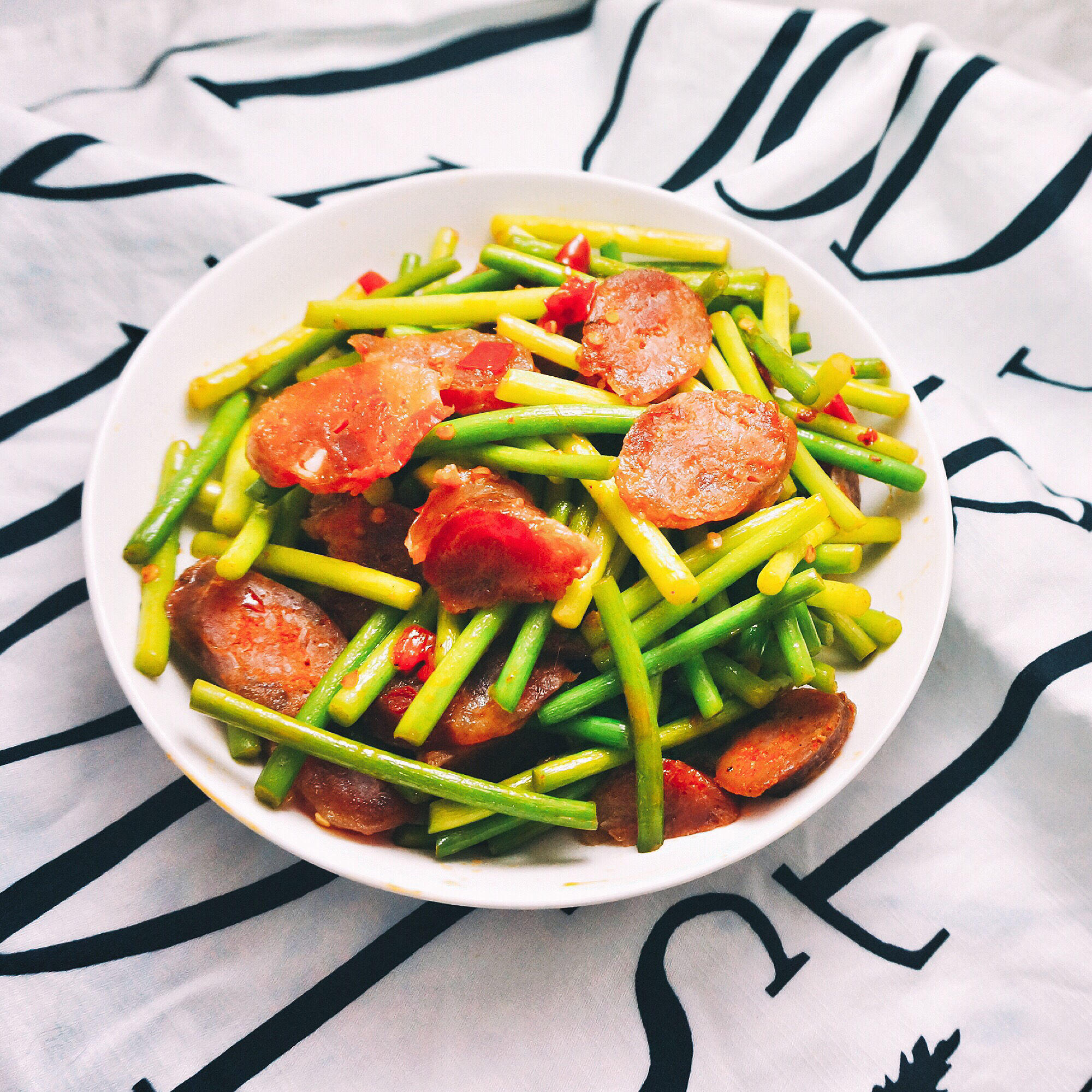 蒜苔炒香肠,任性地放了很多香肠
