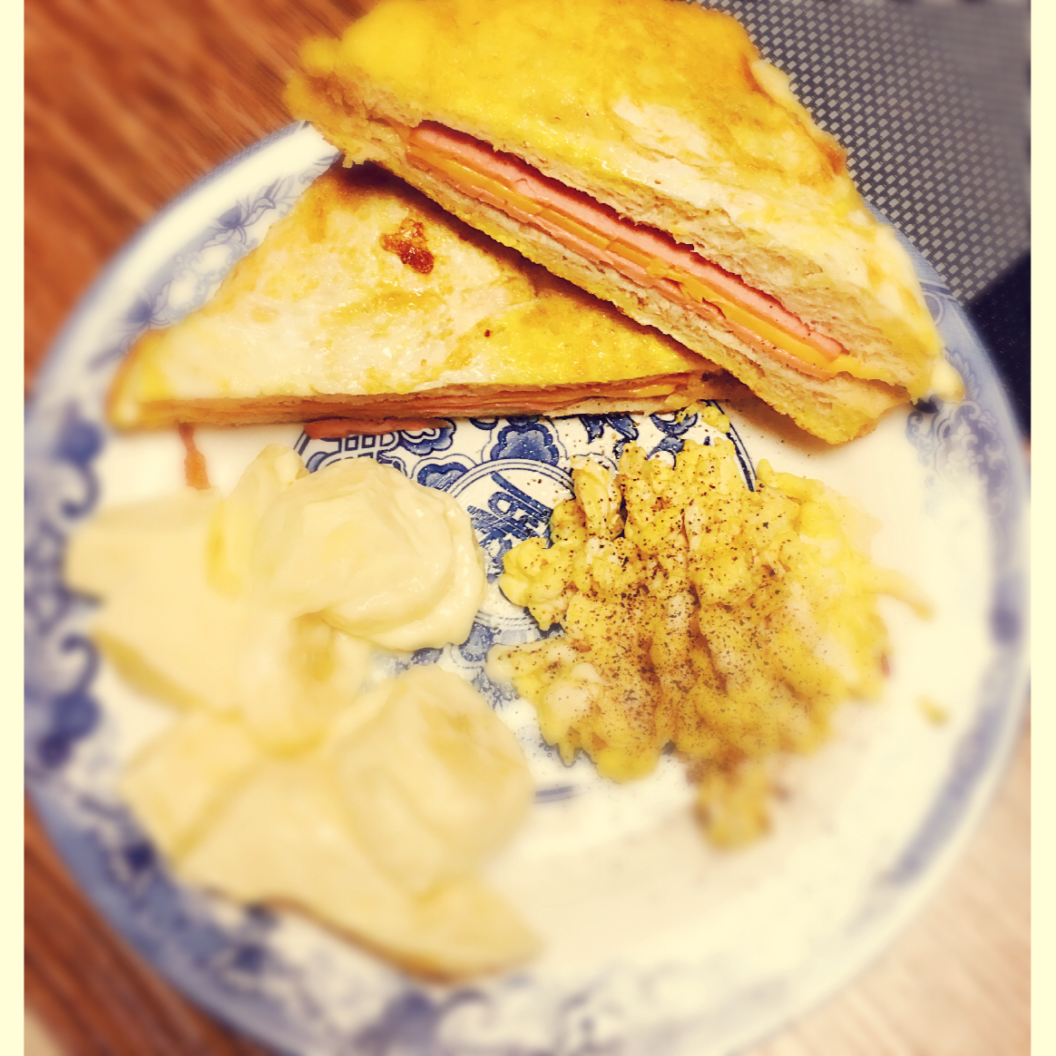 昨晚剩了块蛋糕,然后今早的早点就有了~