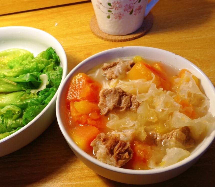木瓜排骨汤&烫青菜