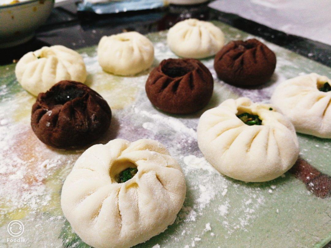 菜里面加了点香油很不错。可可粉皮包了芝麻豆沙。