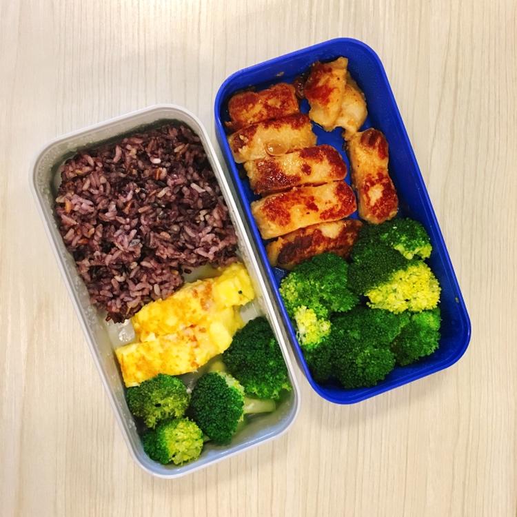 味噌巴沙鱼+芝士玉子烧+🥦+紫米饭