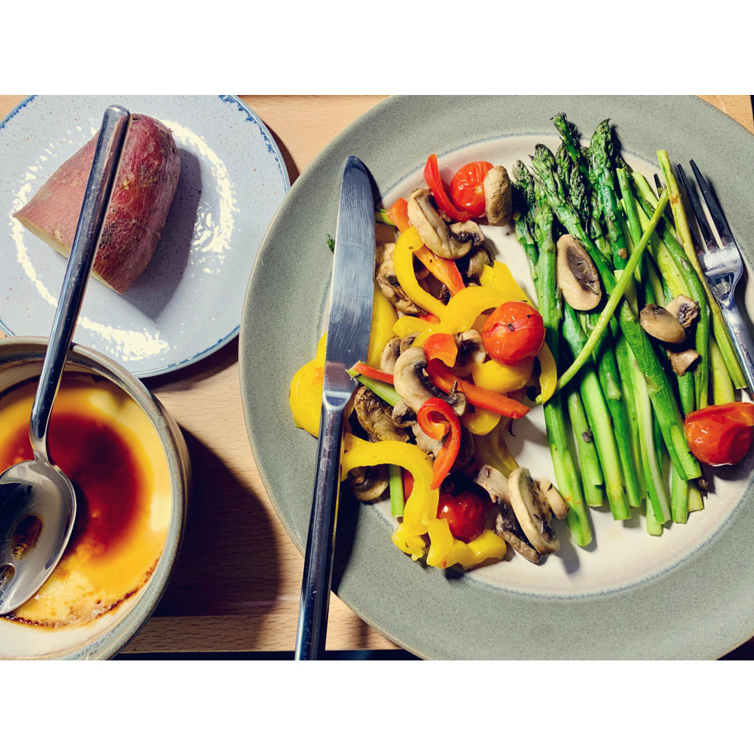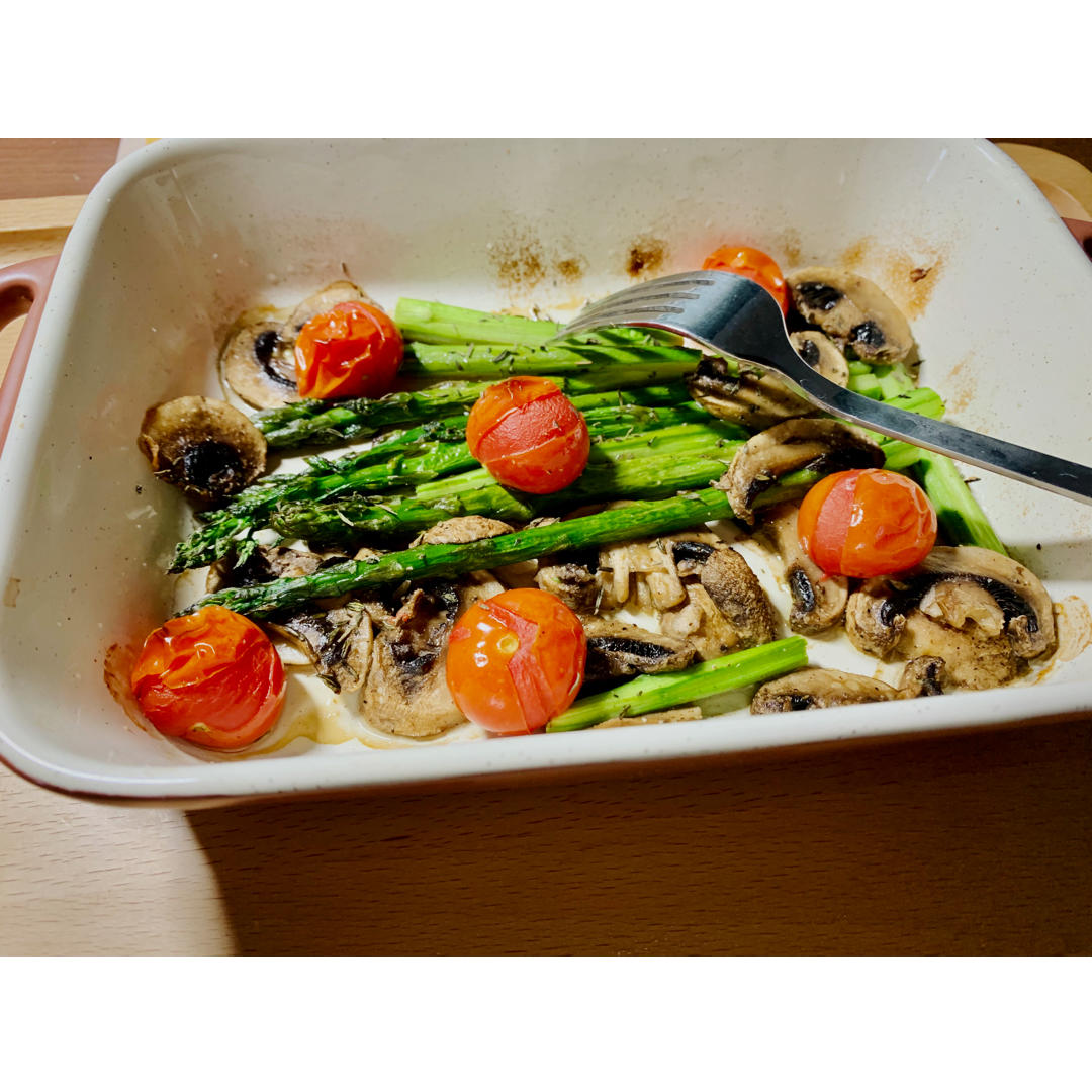最后收官烤芦笋口蘑小番茄 还是不能没有蔬菜...